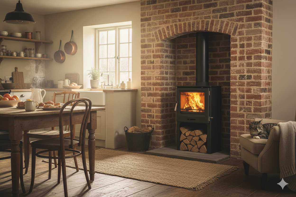 The Cast Tec Horizon 5 Logstore is a stylish stove that combines a generous flame view with a practical built-in log store. Its tall, modern profile adds presence to any room while keeping firewood neatly stacked and close to hand.