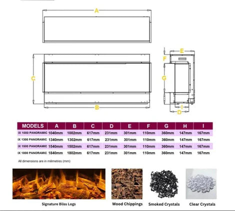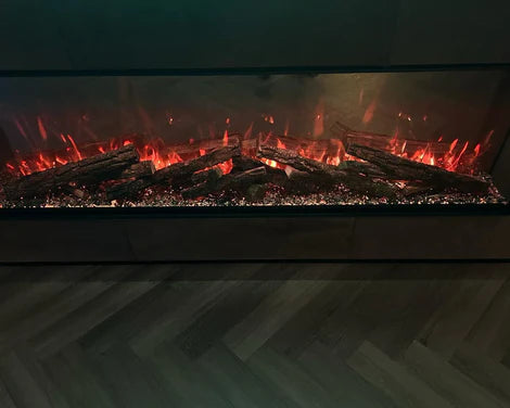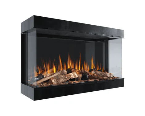 The Panoramic IX 1000 is a 1000mm wide electric media wall fire featuring advanced LED flame technology, customisable flame colours, and realistic log and crystal fuel bed options. Designed for modern interiors, this panoramic electric fire can be installed as a one, two, or three sided display, making it perfect for feature walls and contemporary living spaces.