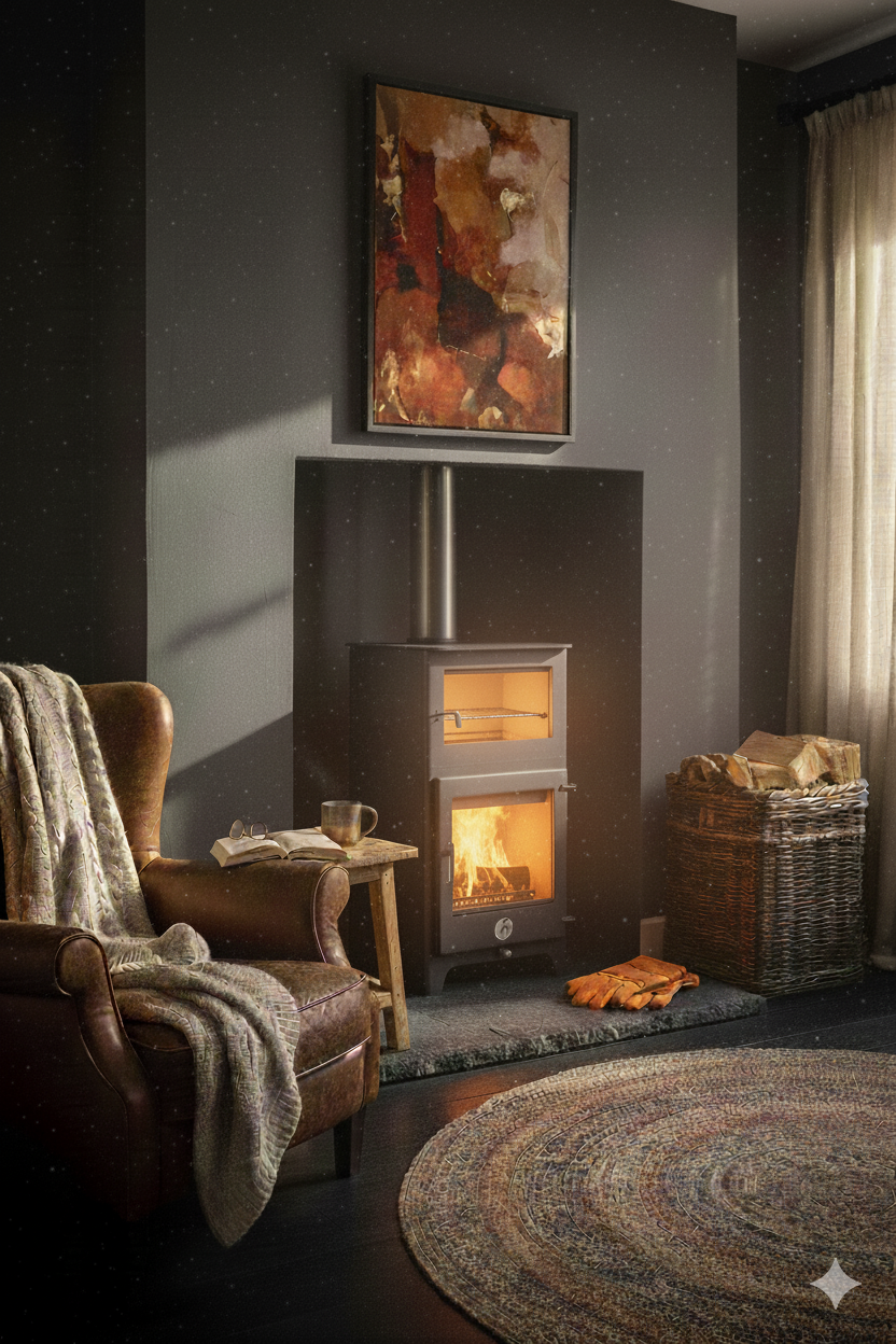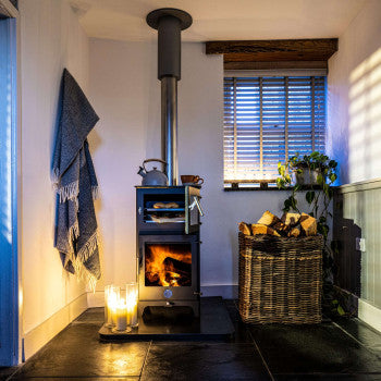 The Popty Cube by Chilli Penguin is a compact wood-burning stove with an integrated oven, designed for modern living spaces that value both warmth and versatility. Its neat cube design makes it ideal for smaller homes, cabins, or off-grid setups where cooking and heating need to work together.