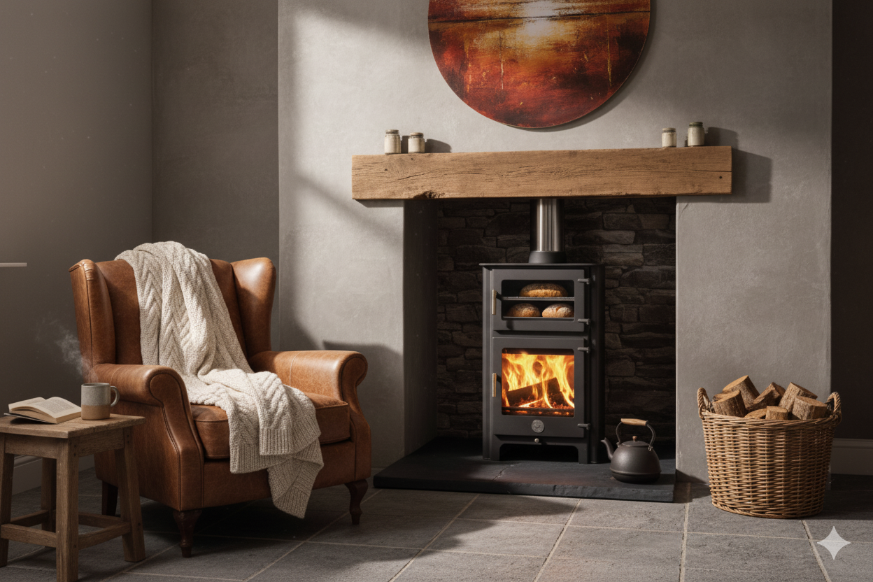 Perfect for open-plan rooms, cottages, or off-grid homes, it offers the ability to heat your space, cook, and boil water, all from one beautifully engineered appliance.