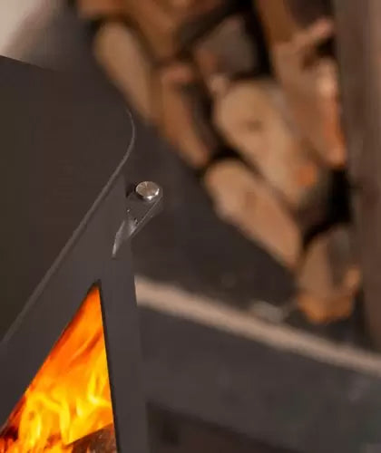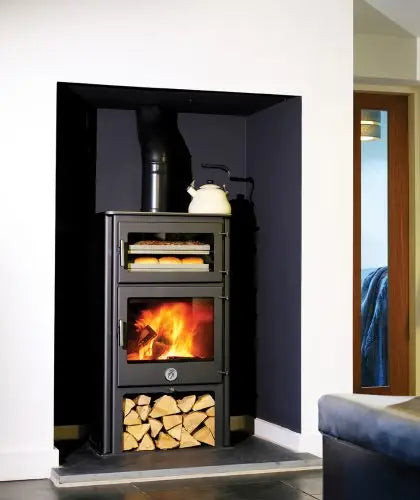 The Seventy Ate “78” by Chilli Penguin is a bold, contemporary wood-burning stove with an impressive 7–8 kW heat output, designed to heat larger spaces with ease while creating a striking visual statement.