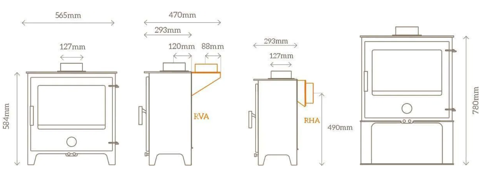 Flue Outlet: Top or rear exit (125 mm)