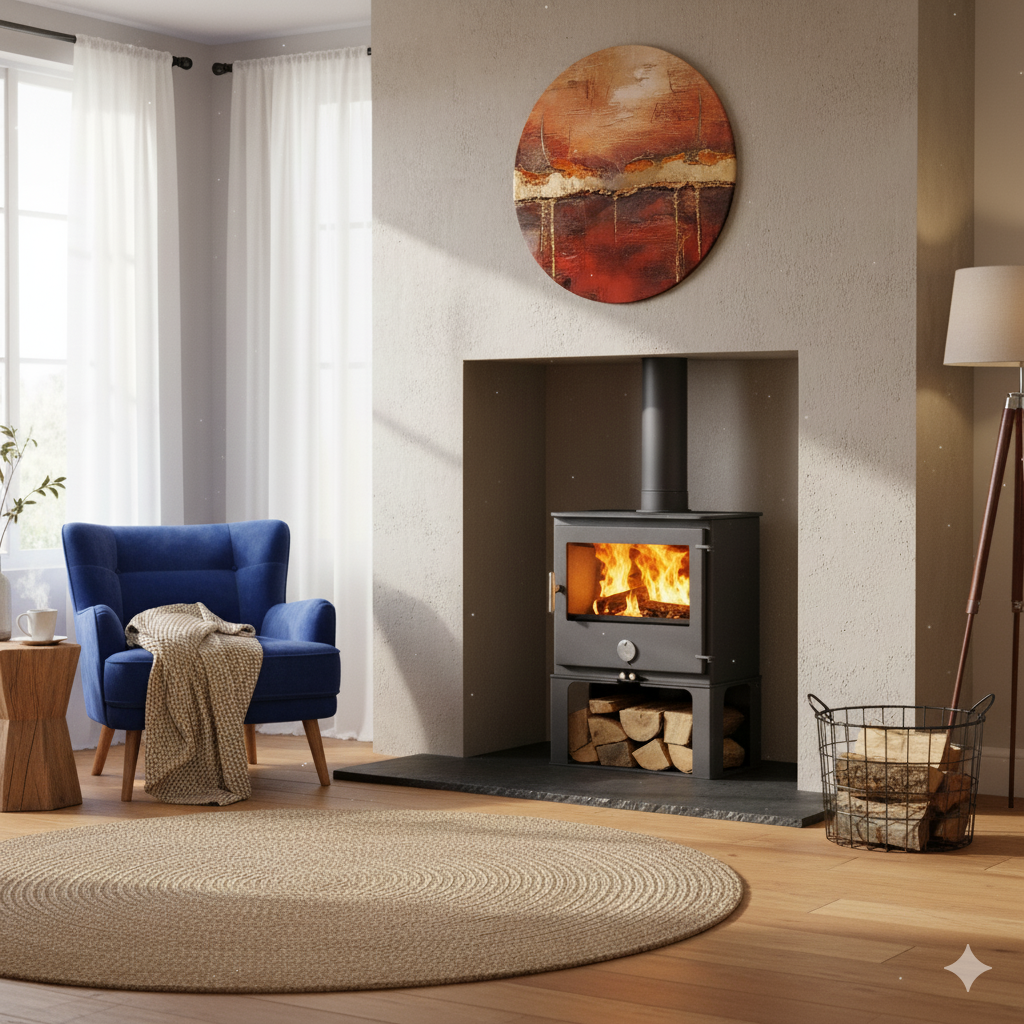 The Woody (Multi-Fuel) by Chilli Penguin is a sleek, contemporary stove designed to offer flexible heating with the option to burn both wood and smokeless fuel.