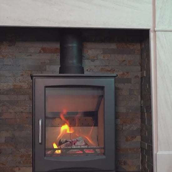 The award-winning Woodford Didsbury 5 wood burning stove is crafted to blend seamlessly with both traditional and modern decor. Its robust steel construction paired with a cast iron door ensures long-lasting durability, while the large viewing window with an active airwash system provides an enchanting view of the fire. Designed for convenience, it features a user-friendly two-lever air control and riddling grate for easy adjustment. With an impressive 81.5% energy efficiency rating, this EcoDesign-compliant and DEFRA-approved stove is an eco-conscious heating choice suitable for smoke control areas in the UK. Visit our showroom to explore further details and get guidance tailored to your home.